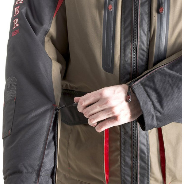 Эргономичный крой костюма делает его максимально удобным. Рукава реглан выкраивается вместе с плечевой частью переда и спинки куртки. Это позволяет свободно двигаться во время активного отдыха. За счет отсутствия швов, вода не проникает под одежду.
